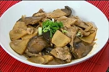材料:冬筍x2(切0.3厚片)、冬菇x3(一切三)、腰內肉片120g